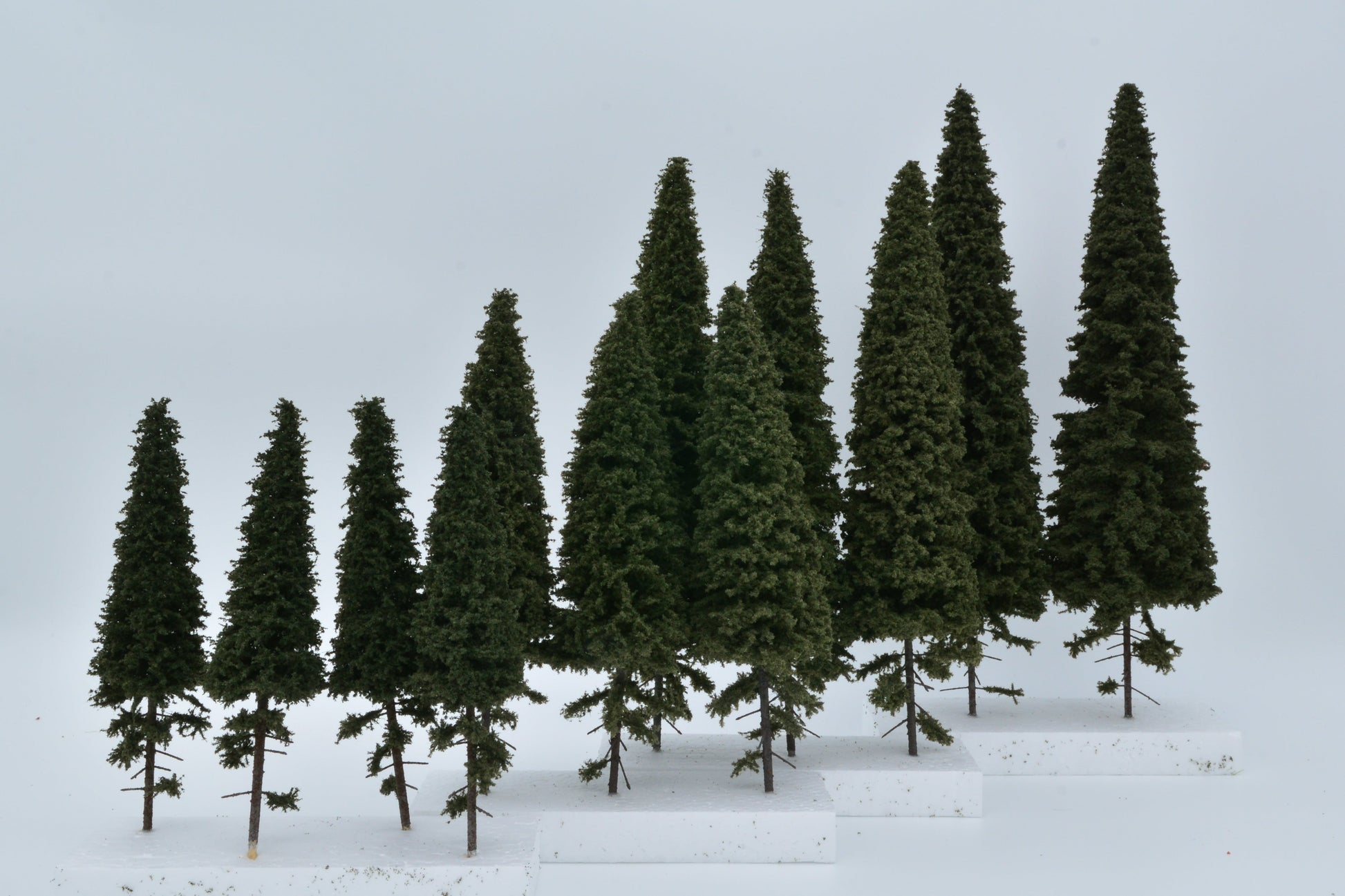 Die realistisch gestalteten Nadelbäume von Model-Scene ermöglichen eine besonders naturgetreue Ausarbeitung von Modelllandschaften. Mit feiner Beflockung, authentischer Farbgebung und detaillierter Struktur wirken diese Fichten wie echte verkleinerte Vorbilder und eignen sich ideal für Waldabschnitte, Baumgruppen oder als markante Einzelbäume in Dioramen und Modellbahnanlagen.
