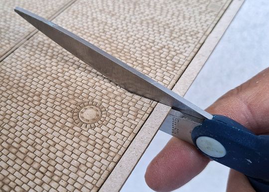 Hergestellt aus hochwertigem Karton mit feiner Lasergravur, die die Struktur des Fächerpflasters detailgetreu wiedergibt. Die Elemente lassen sich problemlos mit Skalpell, Cutter oder Schere zuschneiden.